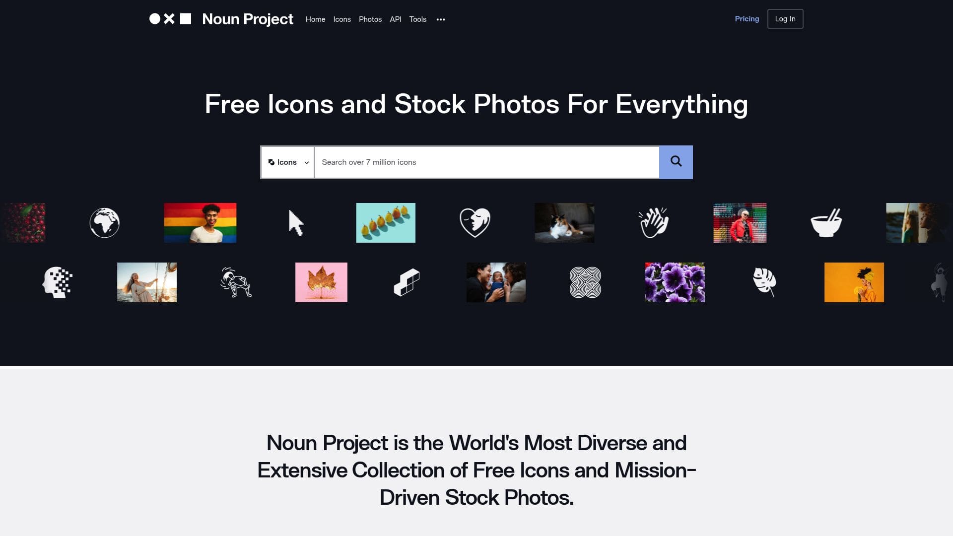 The Noun Project offers over 7 million high-quality SVG and PNG icons, as well as stock photos