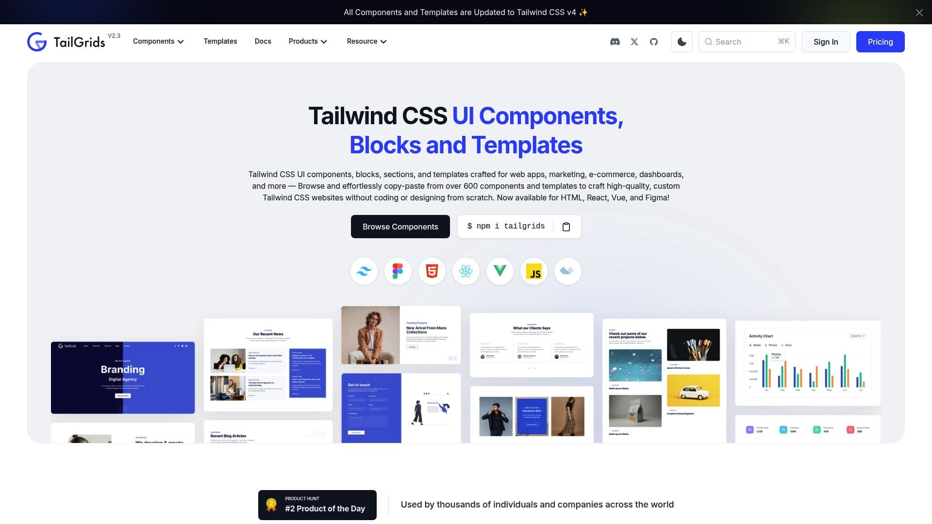 Tailgrids is a free and open-source library of components for Tailwind CSS